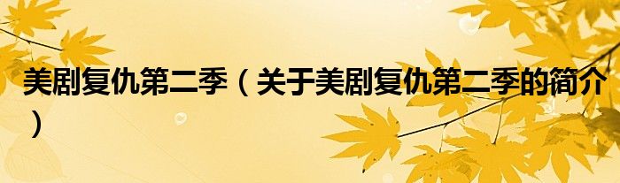 本文關于美劇復仇第二季的簡介就講解完畢,希望對大家有所幫助。