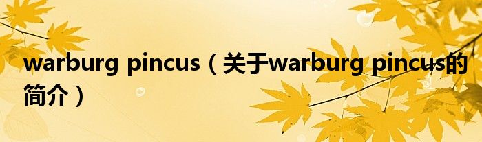 本文關(guān)于warburg pincus的簡(jiǎn)介就講解完畢,希望對(duì)大家有所幫助。