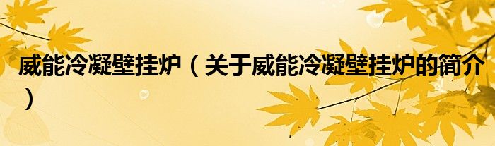 本文關(guān)于威能冷凝壁掛爐的簡(jiǎn)介就講解完畢,希望對(duì)大家有所幫助。