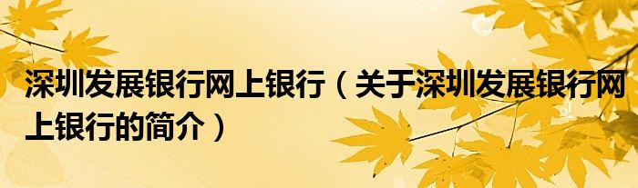 本文關于深圳發展銀行網上銀行的簡介就講解完畢,希望對大家有所幫助。
