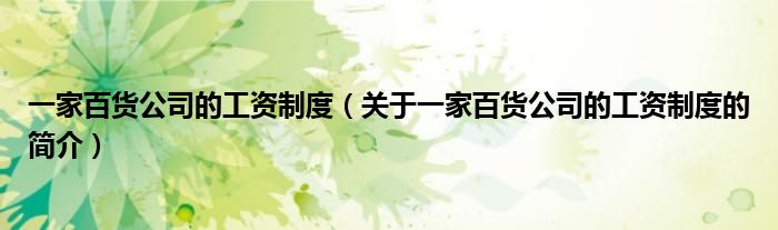 本文關于一家百貨公司的工資制度的簡介就講解完畢,希望對大家有所幫助。