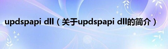 大家好,updspapi dll,關于updspapi dll的簡介很多人還不知道,現在讓我們一起來看看吧!
