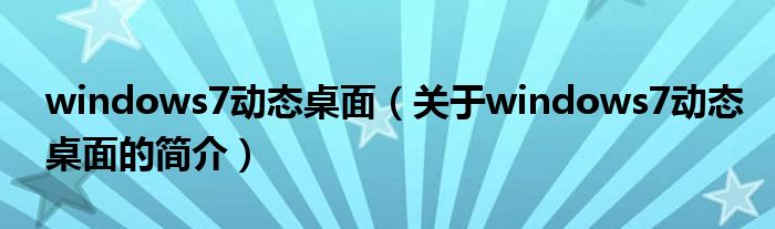 本文關于windows7動態桌面的簡介就講解完畢,希望對大家有所幫助。