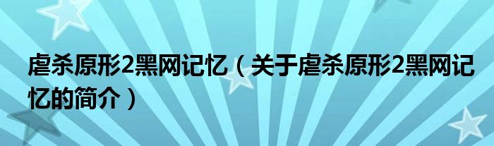 本文關于虐殺原形2黑網記憶的簡介就講解完畢,希望對大家有所幫助。