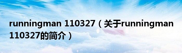 本文關于runningman 110327的簡介就講解完畢,希望對大家有所幫助。