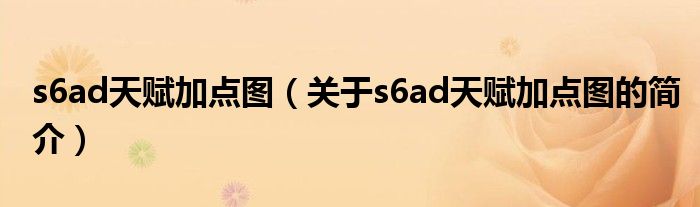 本文關于s6ad天賦加點圖的簡介就講解完畢,希望對大家有所幫助。