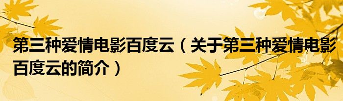 大家好,第三種愛情電影百度云,關于第三種愛情電影百度云的簡介很多人還不知道,現在讓我們一起來看看吧!