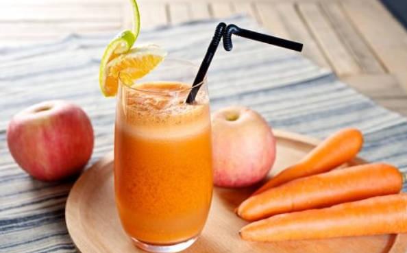 將蘋果胡蘿卜和生姜放在一起榨成汁,果汁中會含有豐富的胡蘿卜素,檸檬酸,蘋果酸,果膠,維生素a,還有生姜中的一些物質,這些食物都是純天然的,就算經常喝,也不會對身體產生任何的副作用,而且營養豐富,水果加上生姜榨成汁,吸收效果是最好的,對于缺乏各種營養物質的人可以經常飲用。