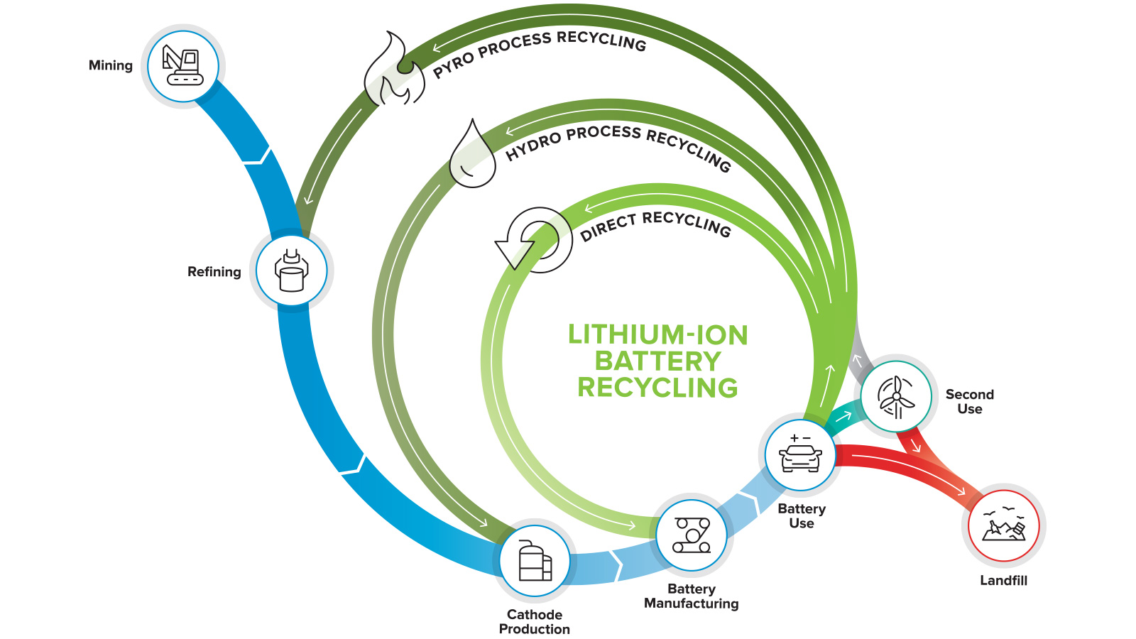 關于電動汽車發展的討論中經常提出的一個話題是如何處理已達到使用壽命終點的鋰離子電池。雖然反對者設想堆放著廢舊電池組的垃圾填埋場,但實際情況是鋰離子電池中所含的材料是有價值的,值得回收利用。