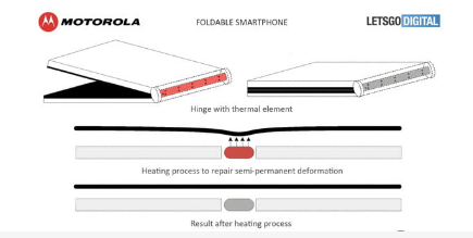 該專利建議摩托羅拉將利用熱量來消除因折疊和展開顯示器而造成的OLED顯示器損壞。該公司計劃在其智能手機的鉸鏈中放置一個加熱元件,以提高顯示屏的溫度,以防止因重復使用而造成的折痕和其他損壞。