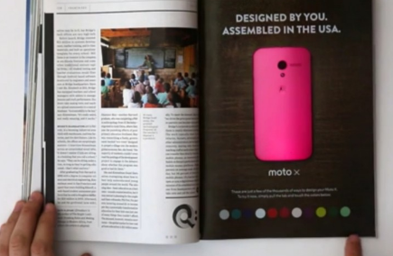 該顯示了摩托羅拉計劃如何在一月份的《有線》雜志上為其Moto X智能手機做廣告。請注意,并非所有問題,但該雜志的精選副本將具有“首次互動印刷體驗”。這是一個非常酷的概念,它說明了智能手機的可定制性。它還嘲笑了很棒的營銷材料的未來。