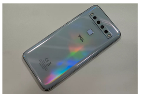 但是,沒有無線充電,也沒有eSIM支持。背面有一個指紋傳感器,TCL包括一個3.5毫米耳機插孔和一個microSD卡插槽(最多256 GB卡),以增加128 GB的內部存儲空間。