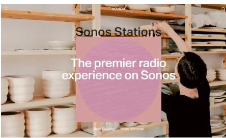 這些本地廣播電臺當然包括廣告。但是,Sonos Radio的第二個組件Sonos Sound System是每周一次的無廣告廣播節目,由Angel Angel Olsen和JPEGMAFIA等客座藝術家主持。Sonos Sound System的每一集都記錄在該公司位于紐約市的商店中,長達60分鐘,其中包括一堆新的和重新發現的音樂以及一些“幕后”內容。