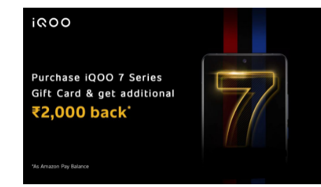 從今天 5 月 18 日至 2021 年 5 月 24 日,iQOO 7 系列禮品卡可以購買任何面額的禮品。禮品卡可以進一步兌換為價值盧比的現(xiàn)金返還優(yōu)惠。2,000 2021 年 5 月 25 日至 6 月 30 日期間在亞馬遜上購買 iQOO 7 系列。