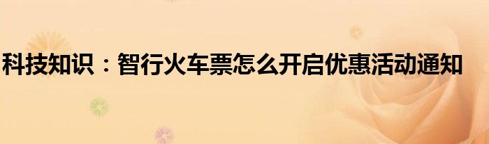 如今使用IT數碼設備的小伙伴們是越來越多了,那么IT數碼設備當中是有很多小技巧的,這些技巧很多小伙伴一般都是不知道如何來實用的,就好比最近就有很多小伙伴們想要知道智行火車票怎么開啟優惠活動通知,那么既然現在大家對于智行火車票怎么開啟優惠活動通知都感興趣,小編就來給大家分享下關于智行火車票怎么開啟優惠活動通知的一些信息吧。