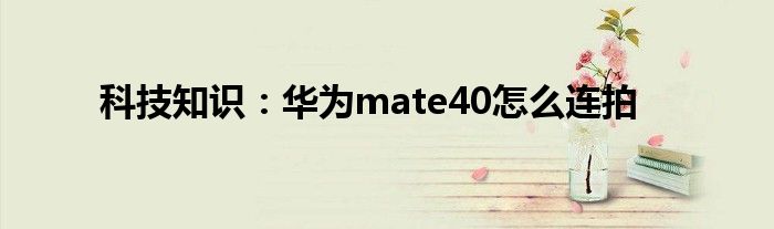 如今使用IT數(shù)碼設(shè)備的小伙伴們是越來越多了,那么IT數(shù)碼設(shè)備當(dāng)中是有很多小技巧的,這些技巧很多小伙伴一般都是不知道如何來實用的,就好比最近就有很多小伙伴們想要知道華為mate40怎么連拍,那么既然現(xiàn)在大家對于華為mate40怎么連拍都感興趣,小編就來給大家分享下關(guān)于華為mate40怎么連拍的一些信息吧。