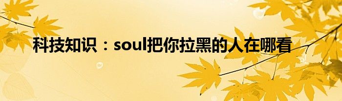 如今使用IT數(shù)碼設備的小伙伴們是越來越多了,那么IT數(shù)碼設備當中是有很多小技巧的,這些技巧很多小伙伴一般都是不知道如何來實用的,就好比最近就有很多小伙伴們想要知道soul把你拉黑的人在哪看,那么既然現(xiàn)在大家對于soul把你拉黑的人在哪看都感興趣,小編就來給大家分享下關于soul把你拉黑的人在哪看的一些信息吧。