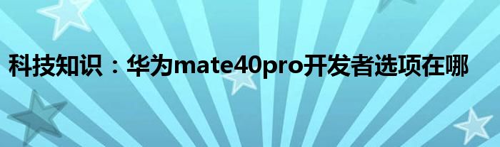 如今使用IT數碼設備的小伙伴們是越來越多了,那么IT數碼設備當中是有很多小技巧的,這些技巧很多小伙伴一般都是不知道如何來實用的,就好比最近就有很多小伙伴們想要知道華為mate40pro開發者選項在哪,那么既然現在大家對于華為mate40pro開發者選項在哪都感興趣,小編就來給大家分享下關于華為mate40pro開發者選項在哪的一些信息吧。
