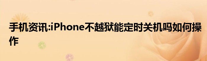 如今使用IT數(shù)碼設(shè)備的小伙伴們是越來(lái)越多了,那么IT數(shù)碼設(shè)備當(dāng)中是有很多知識(shí)的,這些知識(shí)很多小伙伴一般都是不知道的,就好比最近就有很多小伙伴們想要知道iPhone不越獄能定時(shí)關(guān)機(jī)嗎如何操作,那么既然現(xiàn)在大家對(duì)于iPhone不越獄能定時(shí)關(guān)機(jī)嗎如何操作都感興趣,小編就來(lái)給大家分享下關(guān)于iPhone不越獄能定時(shí)關(guān)機(jī)嗎如何操作的一些信息吧。