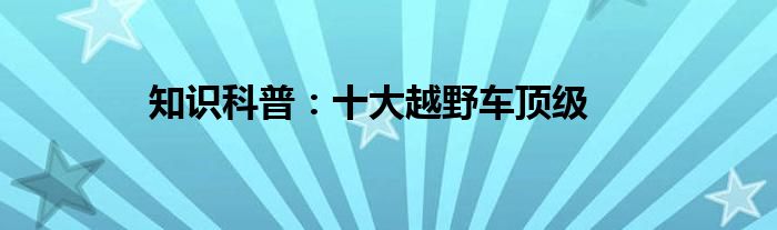 如今隨著人們生活品質越來越高,大家對于生活方面的追求也是越來越多了,那么既然對于生活方面的知識需求了解,那么小編今天就來給大家針對十大越野車頂級這方面的知識來進行一個介紹吧。