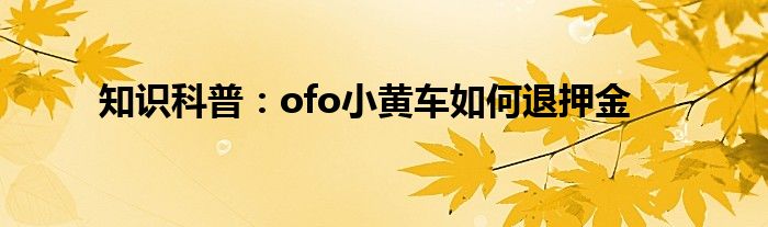 如今隨著人們生活品質越來越高,大家對于生活方面的追求也是越來越多了,那么既然對于生活方面的知識需求了解,那么小編今天就來給大家針對ofo小黃車如何退押金這方面的知識來進行一個介紹吧。