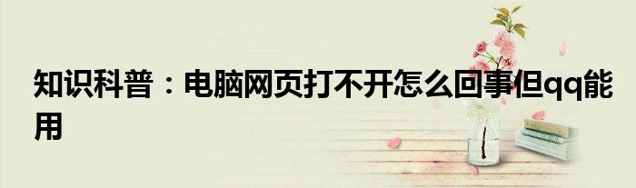 如今隨著人們生活品質(zhì)越來越高,大家對(duì)于生活方面的追求也是越來越多了,那么既然對(duì)于生活方面的知識(shí)需求了解,那么小編今天就來給大家針對(duì)電腦網(wǎng)頁打不開怎么回事但qq能用這方面的知識(shí)來進(jìn)行一個(gè)介紹吧。