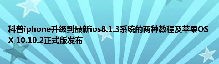 蘋果周二正式發布iOS8.1.3系統更新。此次更新修復了多個系統Bug,和提高了穩定性及性能,如減少執行軟件更新時所需額外空間,和iPad上無法使用多任務手勢等問題,其中減少更新系統所需空間對16G的機友們來說無疑是個好消息。