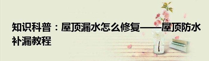 如今隨著人們生活品質越來越高,大家對于生活方面的追求也是越來越多了,那么既然對于生活方面的知識需求了解,那么小編今天就來給大家針對屋頂漏水怎么修復——屋頂防水補漏教程這方面的知識來進行一個介紹吧。
