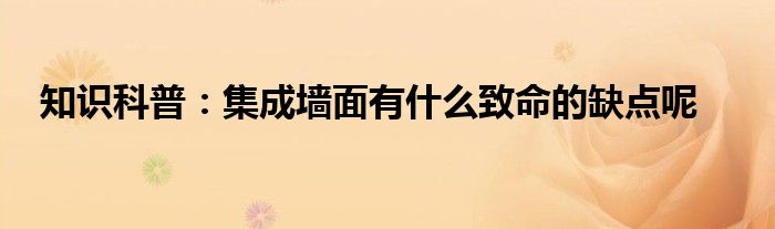 如今隨著人們生活品質越來越高,大家對于生活方面的追求也是越來越多了,那么既然對于生活方面的知識需求了解,那么小編今天就來給大家針對集成墻面有什么致命的缺點呢這方面的知識來進行一個介紹吧。