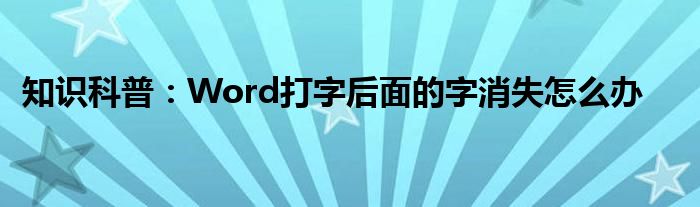 如今隨著人們生活品質(zhì)越來越高,大家對(duì)于生活方面的追求也是越來越多了,那么既然對(duì)于生活方面的知識(shí)需求了解,那么小編今天就來給大家針對(duì)Word打字后面的字消失怎么辦這方面的知識(shí)來進(jìn)行一個(gè)介紹吧。
