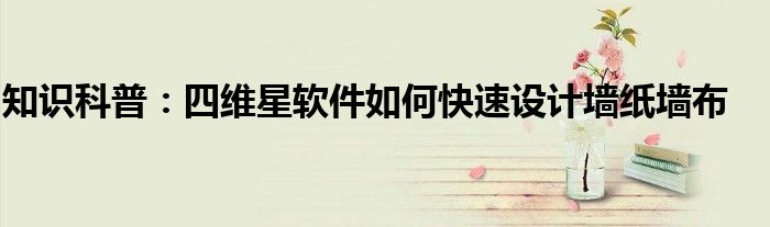 如今隨著人們生活品質越來越高,大家對于生活方面的追求也是越來越多了,那么既然對于生活方面的知識需求了解,那么小編今天就來給大家針對四維星軟件如何快速設計墻紙墻布這方面的知識來進行一個介紹吧。