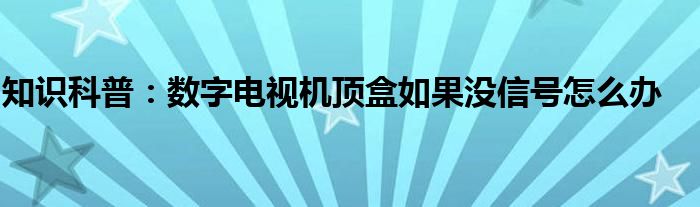 如今隨著人們生活品質(zhì)越來越高,大家對于生活方面的追求也是越來越多了,那么既然對于生活方面的知識需求了解,那么小編今天就來給大家針對數(shù)字電視機頂盒如果沒信號怎么辦這方面的知識來進行一個介紹吧。