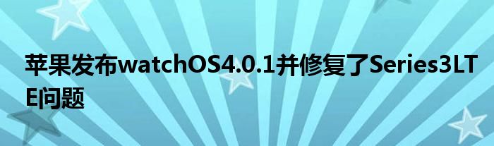 蘋果周三向公眾發布了watchOS 4.0.1。該軟件更新僅在正式4.0發布后一周后發布,它修復了影響Apple Watch Series 3 LTE性能的Wi-Fi錯誤。