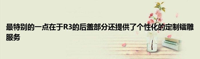 近期涉及最特別的一點在于R3的后蓋部分還提供了個性化的定制鐳雕服務內容備受矚目,很多讀者對此也很有興趣,現在給大家羅列關于最特別的一點在于R3的后蓋部分還提供了個性化的定制鐳雕服務最新消息。