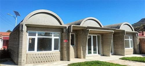 在娟子的家內(nèi)部,這一棟農(nóng)宅是我國(guó)第一棟完全由3D混凝土打印技術(shù)建造的房子,墻體呈現(xiàn)灰色,拱形的房頂。在農(nóng)村的眾多房舍當(dāng)中十分引人注目。