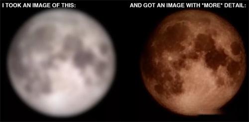 首先證明博主先在官方網站上下載了一張超高分辨率的月球照片。然后將這張照片的尺寸縮小到1708170的像素,加上高斯模糊后已經完全看不清月球上的細節,使用三星手機變焦拍攝了一張月亮的照片,經過同樣的處理后兩張照片進行對比,發現用三星手機拍攝的月亮照片仍然存在著豐富的細節。這也證明了三星發布的所有高倍率變焦機型都存在了造假行為。