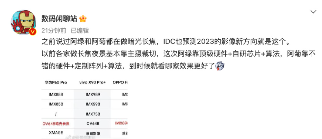 在近期暗光長膠成為了網絡論壇中手機領域熱議的對象,知名數碼博主爆料國內有多個手機廠商將會在長江影像中進一步更新。有了這一功能以后,用戶可以在暗光的情況下使用長焦鏡頭拍攝。有消息透露出華為旗下即將發布的p60系列和OPPO旗下即將發布的Findx6系列將會搭載這一功能。