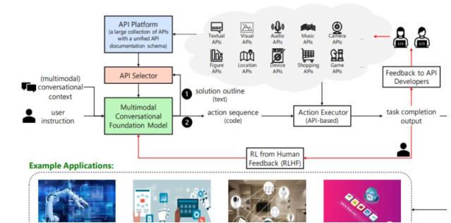 簡單來說,多模態(tài)對話技術(shù)類模型可以生成具體問題的解決方案, API的選擇器就從平臺當中挑選合適的API之后執(zhí)行器就根據(jù)對話模態(tài)所生成的代碼,將API調(diào)用,最終將任務(wù)解決。