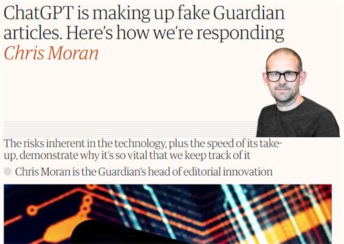 一些情況下,虛構(gòu)的一些內(nèi)容讓媒體記者本人都很難以確信自己是否真的寫過類似的內(nèi)容,《衛(wèi)報(bào)》的記者,上個(gè)月接受研究人員的信件,詢問Chat GPT中闡述的關(guān)于記者數(shù)年前寫的一篇文章,記者本人不記得,但標(biāo)題又很像自己的風(fēng)格,最終確定這一篇文章,根本就不存在。