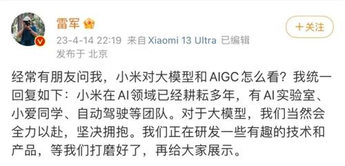 現(xiàn)在我國諸多科技巨頭紛紛進(jìn)軍到大模型領(lǐng)域中,在近日雷軍在自己的個人社交平臺中表示,對于大模型領(lǐng)域小米將會全力以赴,作為小米集團(tuán)的創(chuàng)始人,雷軍除了代表小米表達(dá)了對于大模型的態(tài)度以外,在自己的個人社交平臺發(fā)文中還表示目前小米在大規(guī)模產(chǎn)品中開始研究全新的產(chǎn)品和技術(shù),目前還未完全結(jié)束,等待成品打造完成以后將會亮相。