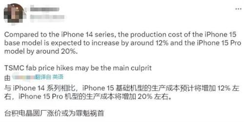 據知情人透露,蘋果iPhone 15 Pro的生產成本相比iPhone 14 Pro增加了20%左右,標準的iPhone 15機型成本也將增加12%左右??紤]到蘋果公司此前的定價策略,不排除新的iPhone 15和iPhone 15 Pro系列機型價格將有所上漲。