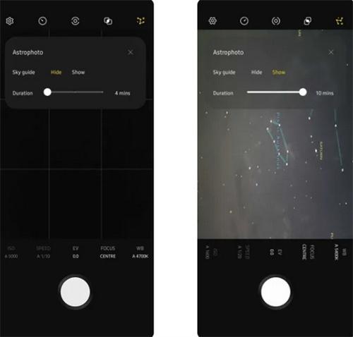 Expert RAW的天文攝影模式依靠長(zhǎng)時(shí)間曝光拍攝來(lái)捕捉夜空中可見的恒星、行星和星座的高質(zhì)量圖像。此外,該應(yīng)用還具有內(nèi)置工具,可幫助用戶指向天空中的各種星座,允許用戶設(shè)置最長(zhǎng)10分鐘的定時(shí)器。建議將設(shè)備安裝在三腳架上以拍攝穩(wěn)定的圖像。