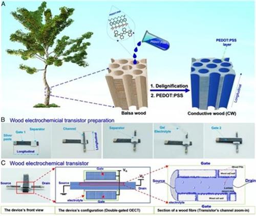 近日瑞典皇家理工學院和林雪平大學研究團隊共同合作的情況下,首次利用導電木頭將晶體管制造出來,這樣的晶體管能夠通過電流實現對電流的控制,]成本較低,同時可以降解,也可以持續。