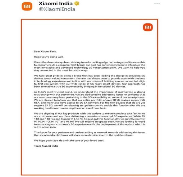此外,小米還指出,所有小米和Redmi的5G手機(jī)都支持Airtel 5G(NSA)服務(wù),為用戶提供更多的網(wǎng)絡(luò)選擇。