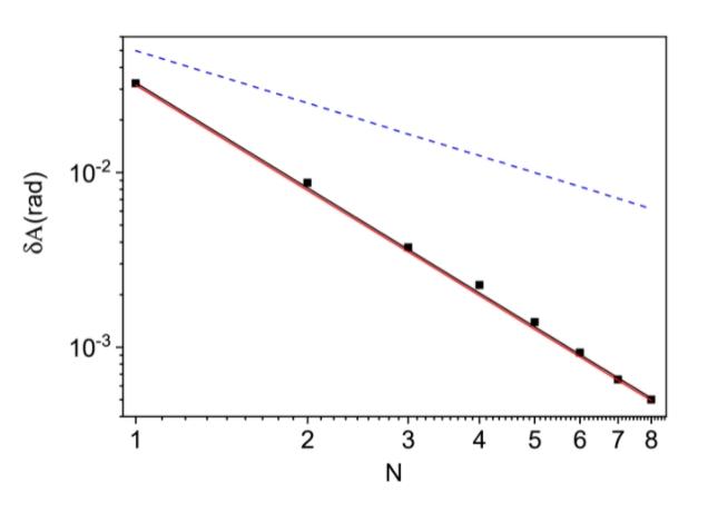 為了克服這一挑戰,科研團隊設計了一種全新的雜化量子裝置,利用一個離散量子比特來控制光子兩組連續變量的時序演化,成功實現了量子不確定因果序。通過這種實驗設置,他們能夠以超過海森堡極限的精度對演化產生的幾何相位進行測量,其中測量的不確定度與獨立演化過程的次數呈反比關系(δA∝1 / N2)。