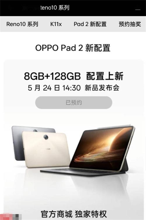 IT之家 5 月 17 日消息,據(jù)IT之家網(wǎng)友反饋,OPPO 將于 5 月 24 日舉行 OPPO Reno10 系列新品發(fā)布會(huì),屆時(shí)將發(fā)布令人期待已久的 OPPO Pad 2 平板電腦。這款平板電腦于今年 3 月首次亮相,如今將推出 8GB+128GB 配置版本,為用戶帶來更出色的性能和儲(chǔ)存空間。