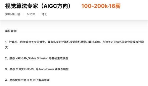 3月以來ChatGPT應(yīng)用火爆之后, AIGC這一領(lǐng)域也陷入了搶人大戰(zhàn)的環(huán)節(jié),不僅騰訊,美團(tuán)百度拼多多等一系列互聯(lián)網(wǎng)大廠家拿著大筆的資金,眾多的AI科研機(jī)構(gòu),公司游戲公司,也都高薪招聘和 AIGC一系列相關(guān)的崗位,在年薪方面甚至可以達(dá)到百萬。