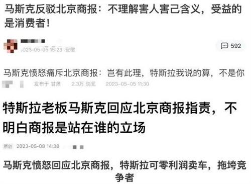 前段時(shí)間對(duì)于汽車資訊較為關(guān)注的朋友們,會(huì)看到一條內(nèi)容出現(xiàn),馬斯克反駁北京商報(bào)。同一個(gè)自媒體博主針對(duì)這個(gè)主題,甚至?xí)斜姸辔恼峦瞥觯虑樽铋_始的原因是,4月21日北京商報(bào)刊發(fā)出了一則對(duì)特斯拉進(jìn)行抨擊的文章《特斯拉降價(jià)傷人傷己》,文章當(dāng)中主要針對(duì)是馬斯克在毛利軍和利潤雙贏的情況下,也要繼續(xù)降價(jià),對(duì)銷量追求的這種做法作出表態(tài),隱含著對(duì)馬斯克這種做法批評(píng)的意思。過了幾天,北京商報(bào)也刊發(fā)了一則更為一已明確的評(píng)論,表示不要對(duì)低端價(jià)格戰(zhàn)成為其中的簇?fù)碚撸屍囆袠I(yè)更為健康的發(fā)展。