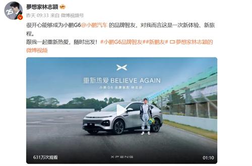 在北京時間2023年的6月6日小鵬汽車官方宣布,林志穎將會成為小鵬汽車公司旗下g6車型的品牌代言人。網友紛紛表示,林志穎作為一名專業的賽車手,同樣也是家喻戶曉的大明星,確實比較符合小鵬汽車g6車型的特征。