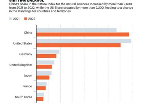 北京時間2023年6月15日官方所發布的2023年自然指數年度榜單中中國研究機構在自然科學領域中的貢獻已經超過了美國的研究機構位于排行榜的第1名。就在6月15日當天世界上最知名的科學雜志Nature發布了2023年自然指數年度榜單,向所有的讀者介紹了對于全球科學領域貢獻最大的機構和國家名稱,據了解此次評定的時間從2022年的1月份截止到2022年的12月份。